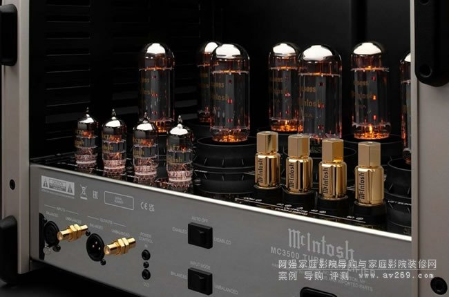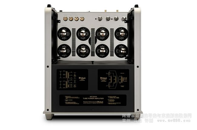 新款的MC3500 MKII則是使用8根EL509S束射四極管,它與當年MC3500使用的6LQ6有近似的特性,它相當強壯、屏流可以高到1安培以上(這在功率管并不多見),并且McIntosh讓MC3500 MKII比照當年的MC3500多使用一組回授電路來改善輸出級功率管的線性。