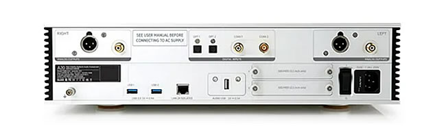 豐富的數字輸入界面,包括配有噪聲隔離的RJ45乙太網絡輸入外,還有兩組USB 3.0的輸入,可供連接外接儲存裝置。同軸、BNC和光纖等S/PDIF輸入則可連接其他的數字訊源,例如CD轉盤、DVD播放機、電視機等,讓你把A20當作是數字訊源匯流中心,利用其內建的DAC解碼來達到最佳質量的播放效果。