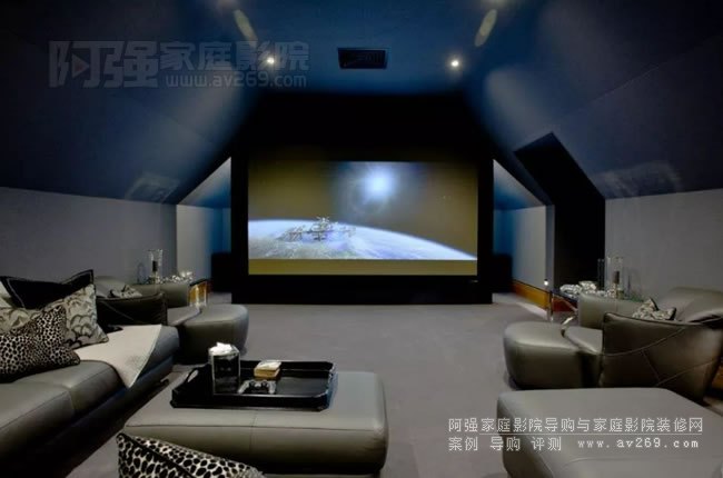 環境處理上,LHCC增加了一個隔墻來處理斜屋頂,根據合理分析后確定了屏幕位置,后者同時也被用來劃分房間,并且允許將主音箱和超低音放置在屏幕背面。為了確保效果,LHCC使用了一種拉伸織物來減少光反射。