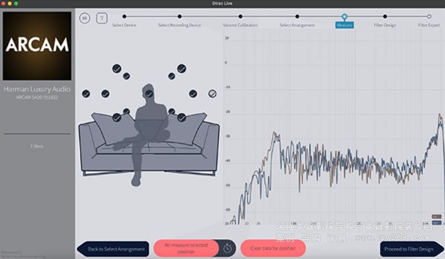 此外,Dirac Research 還配備了 Dirac Live,這是一種室內聲場校正技術,結合了脈沖響應和頻率特性的校正。 使用套件隨附的專用麥克風和 PC 進行多個測量,并在云中執行高級計算。 結果通過網絡發送到 SA30 以反映校正。 特別是在家庭影院應用中,當電視位于揚聲器中心時,反射的影響會很大,但 Dirac Live 應該能夠彌補其缺點。