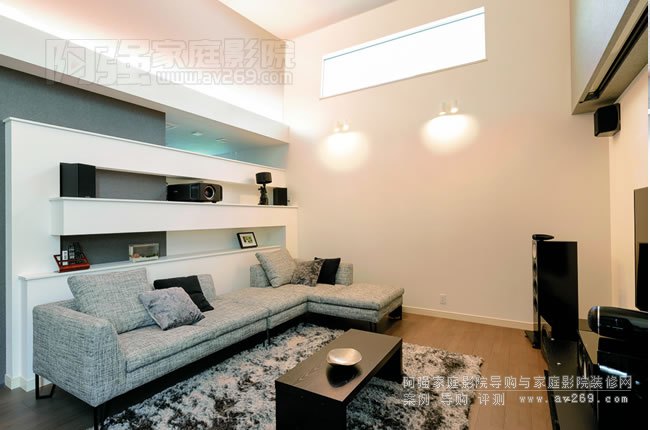 以"家庭之間松散相連,開放生活"為理念的客廳劇院榮獲生活劇院類綜合金獎。 安裝由音頻核心的大蘇克·托莫諾完成。 天花板高度高達5米,在難以安裝設備的空間內,我們設計了各種設備,以安裝屏幕和投影儀,而不會造成壓力。