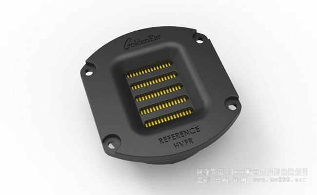 這些中置聲道揚聲器型號集成了一個 D'Appolito 陣列,該陣列由兩個長沖程 5-1/4 ̋ 低音/中音驅動器組成(參考型號上有四個,帶有參考聚焦磁場磁體結構),圍繞著我們標志性的高速折疊帶 (HVFR) 高音揚聲器(以及參考型號上的高斯參考 HVFR)。5-1/4 ̋ 驅動器集成了用于剛性和最小內反射的蜘蛛腿鑄造籃,以及我們獨特的多葉片相位插頭 (MVPP),以最大限度地減少交叉頂點波傳播干擾。它們還采用頂部安裝的壓力耦合二次平面低頻散熱器,既擴展了低音響應,又為低音/中音驅動器提供了理想的聲學負載和阻尼。由于頂部安裝的無源輻射器發出非常低的頻率壓力波,因此它們只需要上方一英寸或兩英寸的間隙,因此如果需要,它們可以放置在機柜/墻壁單元中(始終將揚聲器放置在開口的前部以獲得最佳性能)。阿強家庭影院
