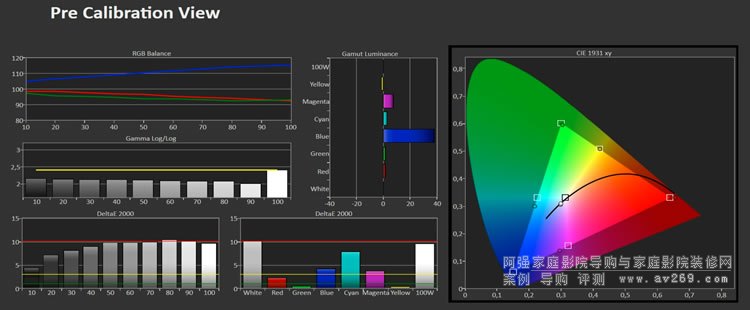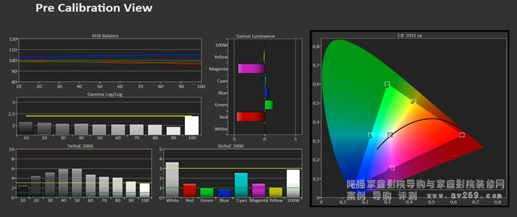 自然來自6863開爾文的盒子。色域亮度僅略低于紅色和洋紅色的DeltaE 5。因此,這似乎是讓ISF校準松動的良好起點。在這里,您也可以看到白平衡發散。這款LCD投影儀上的每個伽瑪曲線在2.1或更低時確實太低了,因為電影是在伽瑪2.4中為家庭制作的,這為圖像提供了更多的深度。讓我們看看我們可以在這方面改進什么。