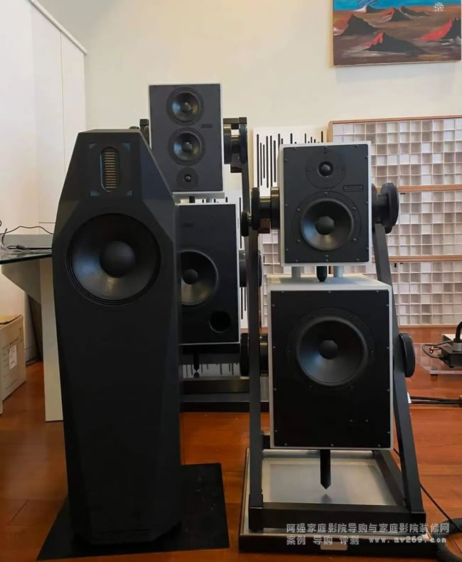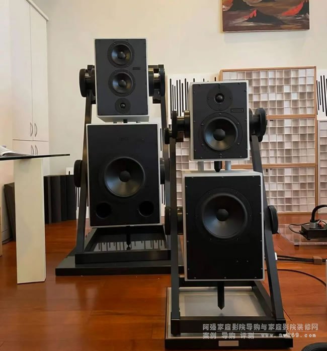 低音單元都是12寸,驅動低音的功放功率也都是300瓦。我們基本可以理解,這是一臺Samadhi,略微縮小版,也需要一定的空間。