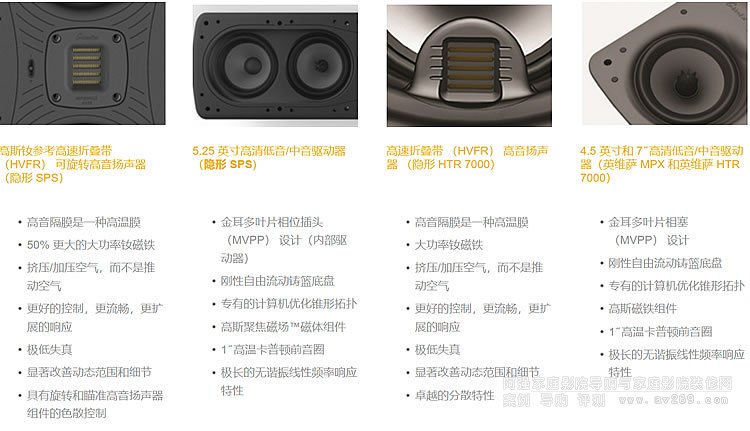 Invisa 系列吸頂揚聲器/壁掛式揚聲器的聲學工程投入了大量的工作,以便在建筑形式中提供最高的音質(zhì)。所有型號(600除外)都集成了高速折疊帶(HVFR™)高頻散熱器,類似于GoldenEar所有屢獲殊榮的塔式,書架式和衛(wèi)星揚聲器中使用的單元。Invisa 525 和 Invisa 600/650/652 采用一體式驅(qū)動器/框架/法蘭結(jié)構(gòu),以最大限度地減少占地面積。該單元化結(jié)構(gòu)由大理石注入聚合物堅固構(gòu)建,實際上具有作為組成部分構(gòu)建的高清寬分散驅(qū)動器。Invisa HTR 7000 將我們的對焦場™技術(shù)與鑄籃式 7 英寸低音/中音驅(qū)動器和 HVFR™ 高音揚聲器相結(jié)合,這些揚聲器在格柵下方傾斜,可在高品質(zhì)的吸頂式家庭影院和音樂系統(tǒng)中作為主揚聲器和/或環(huán)繞聲、后置揚聲器和高度揚聲器實現(xiàn)最佳性能。Invisa MPX 具有先進的寬敞性和分散性,非常適合入墻式主屏幕或環(huán)繞聲使用。Invisa SPS 入墻式超級揚聲器™是高端音樂和/或家庭影院系統(tǒng)的完美主播,采用 GoldenEar 最新的 Triton 參考揚聲器技術(shù)。所有吸頂揚聲器/入墻式揚聲器型號均具有復雜的多元件分頻器,可精確地融合驅(qū)動器,從而實現(xiàn)無縫、精致自然的音質(zhì)。