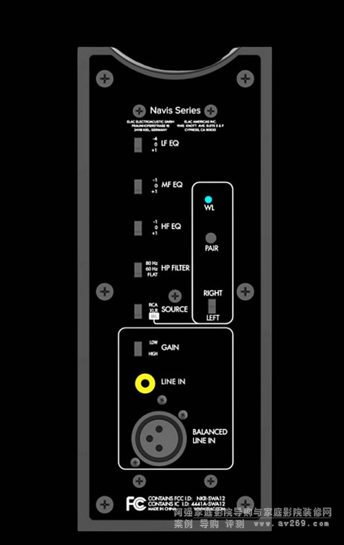Navis 的優雅設計與任何內飾完美融合。其外殼具有精美的家具飾面,有亮黑色,亮白色和木單板可供選擇。專用的落地支架可完成安裝,建議使用該支架以獲得最佳性能。