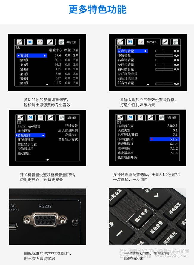 19.每聲道多達(dá)7~11段參數(shù)EQ;