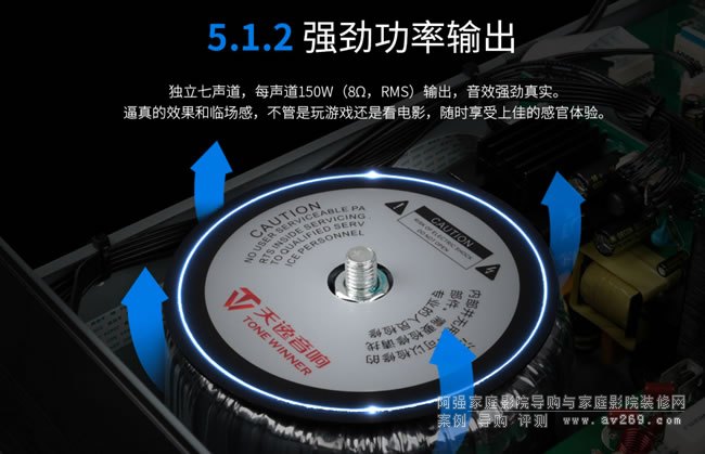 15.內(nèi)置7x150W(8Ω,RMS)大功率H類HI-FI功放,可直接驅(qū)動(dòng)5.1.2聲道配置的揚(yáng)聲器;