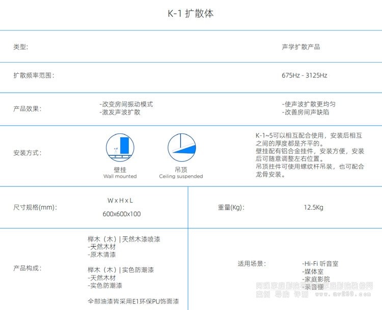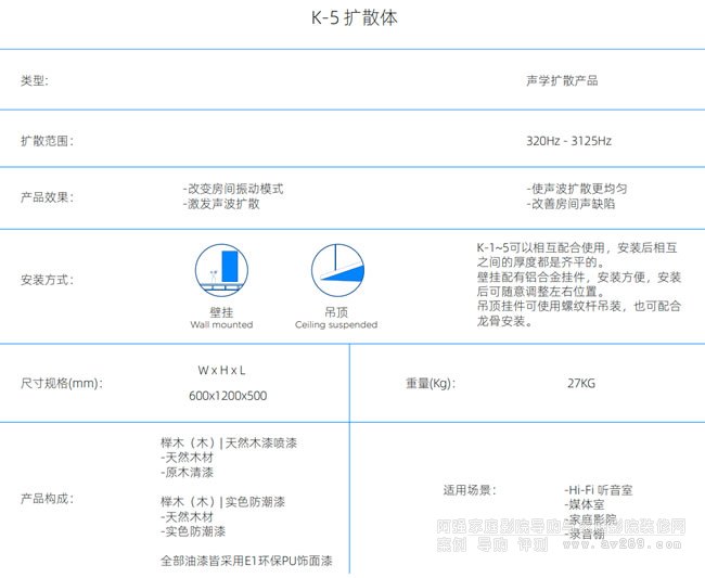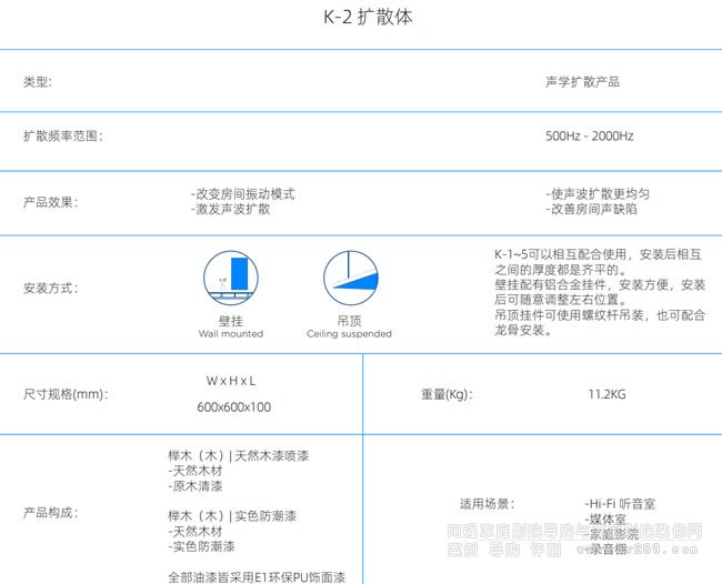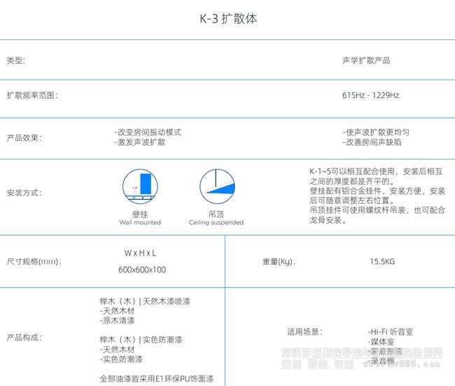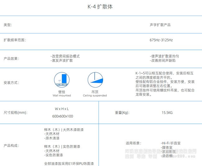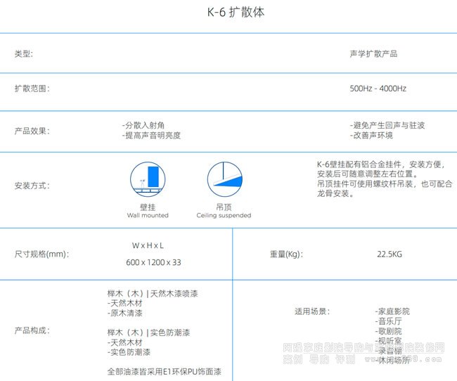 實木擴散體能全方位、多角度地對封閉空間內的入射聲產生均勻的擴散反射。