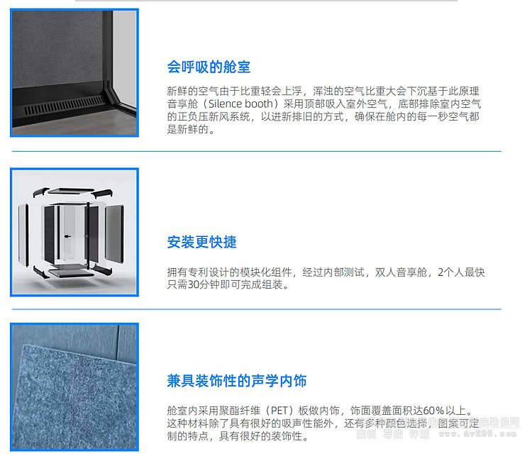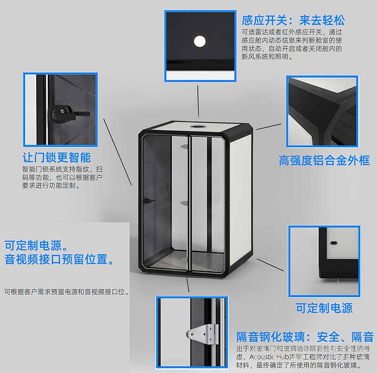 在生活和工作中,我們都有不少的時間是在公共空間中度過的,購物的商場,辦公大樓,擁擠的地鐵站.....然而在某個時候在公共空間里我們非常需要獨處的空間,不受外面世界的打擾,要接打一個緊急的電話,小范圍會議討論,安靜的閱讀......都市繁華,寸土寸金,很多場合,這只是一個不能夠實現的夢想。音享艙的出現使得夢想可以成為現實。