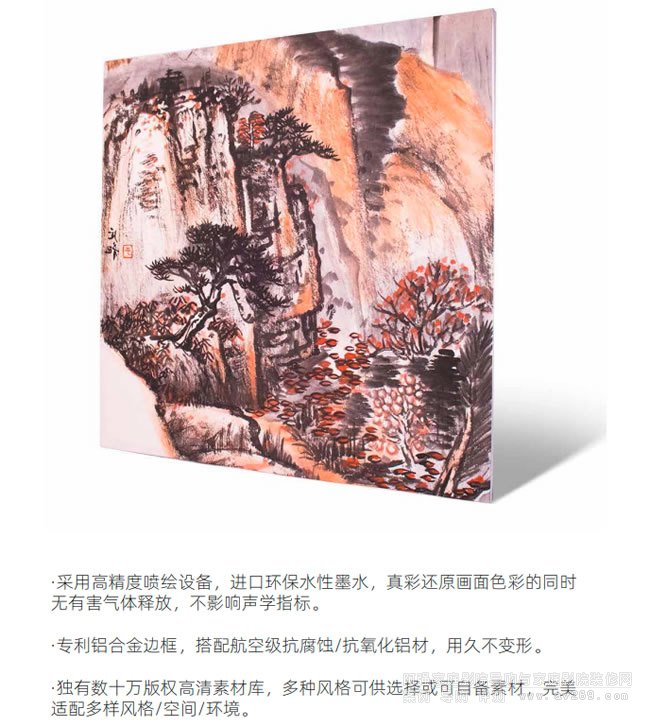 可以在有版權的圖片庫里選取不同風格的圖片定制自己的吸音畫。