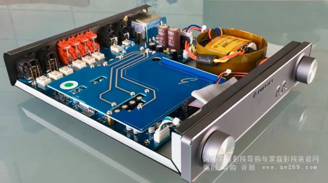 AMG-PRA的布局非常小心地將敏感的音頻信號與電源電路隔離開來。由星形拓撲電源和接地層組成的電源電路建立在一塊電路板上,而一塊單獨的電路板則包含預放大電路。隔離層將這兩塊板分開,從而進一步將干擾降至最低。效果是高度透明的聲音,自然且不會過度蝕刻。