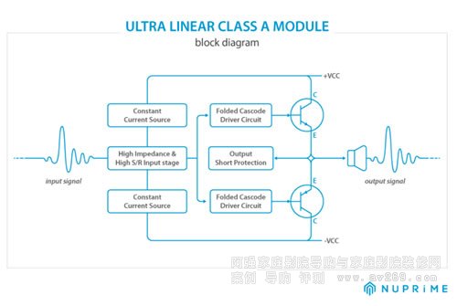 超線性 A 類模塊 (ULCAM) 通過 D 類的動態、速度和效率實現高保真音質的聲音。前置放大器級的THD+N低于0.0015%和信噪比為-130dB的非凡結果。