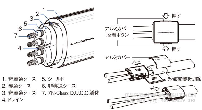 *1 7N-Class D.U.C.C.U.(Dia Ultra 水晶銅) : 高純度銅導(dǎo)體,用于高端音頻電纜,使用世界最高級別的銅,其晶體尺寸與傳統(tǒng)高純度導(dǎo)體相同,但晶體方向也得到最佳控制。