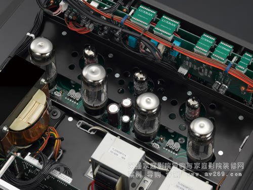LX-380 的輸出管采用光束功率管 6L6GC,以高品質、穩定的供應能力和細膩柔和的音色而聞名。 在結合強度和柔韌性的 MULARD 型驅動級中,將 6L6GC 與推拉式梁管連接的最后一級相結合,并采用固定偏置方法,使電網電壓始終恒定,從而實現 20W+ 20W (6Ω) 的額定輸出,以滿足普通家庭音樂播放的需要。 通過為真空管和外圍部件提供空間,而不是設計規格上的大輸出,我們實現了舒適的功率感覺和音質,這是真空管放大器無法用數值測量的。 此外,這種將這一成就與萊克斯曼專有技術相結合的方法有助于延長真空管的使用壽命,并作為愛機享受多年。