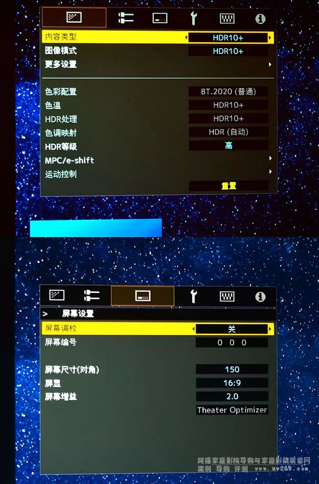 JVC N98還內置了針對用戶使用的幕布尺寸和增益來進行畫面優化功能