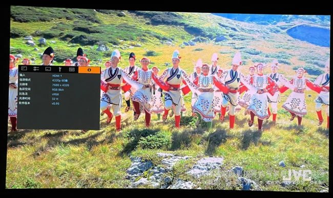 在與NVIDIA RTX3090顯卡搭配組合后我們成功的輸出了8K信號,在得到8K HDR演示片的信號之后,JVC N98展現出了它在8K解析力上的無窮魅力,人物皮膚毛孔細節和草地在陽光下豐富的細膩質感展現的一覽無余,尤其是在超過150吋的大畫面上我們可以清晰的感受到與4K畫面的不同,從視覺沖擊力上近距離的感受到了4K到8K巨大的畫質提升。