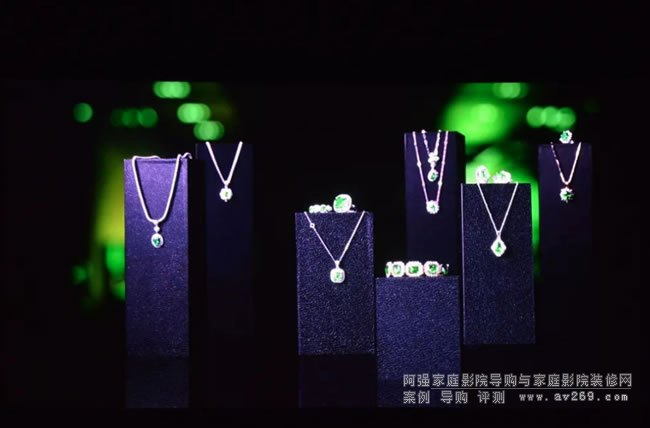 珠寶演示片中,在射燈下珠寶有著耀眼反光的同時,背景黑位也穩穩沉的下去,并且背景綠色光帶也相當平滑完全沒有色帶出現,色彩平滑度極好