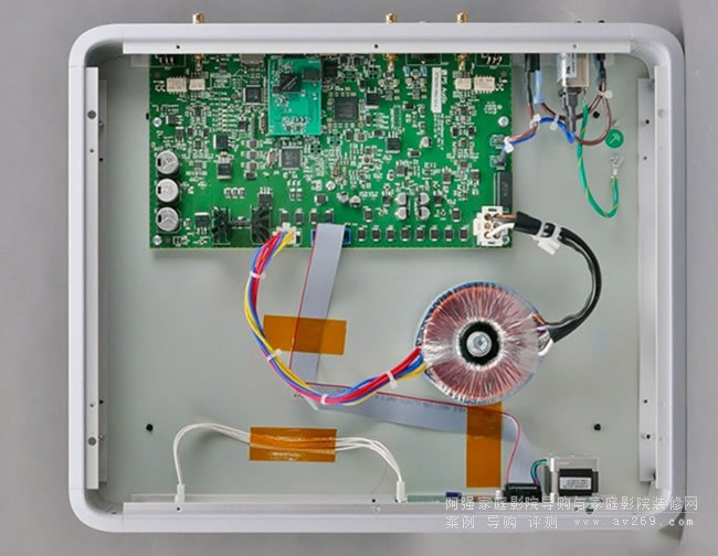 與Directstream DAC相較,DSJ的機箱結構較為簡化,頂板由前者的黑色鋼烤HDF板改為黑色壓克力。