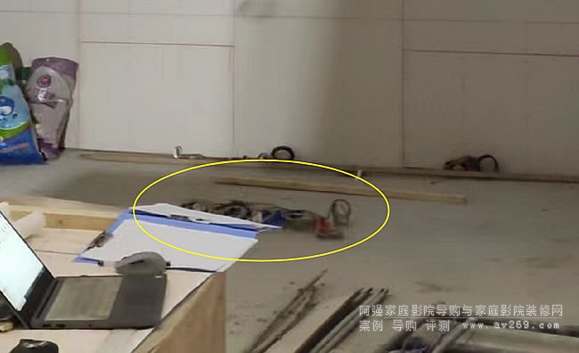 現場的線路已經布置完成,點位需要微調,最重要的把AV和HIFI都匯總到幕布前方,阿強在獨立影音室布線默認思路是:影音控制播放設備盡量不要在投影幕前面或下方,一是指示燈影響觀影體驗,二是美觀和相關設備擺放有影響。如果有HIFI設備建議前面多留幾路電源即可,后期設備直接明線。而多聲道的音視頻線路比較多而雜,可以放到隱蔽處或者操控方便之處,總要有其一可以保障,當然這是建立在空間擺放允許的情況下。