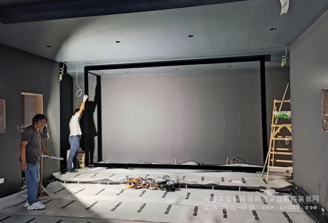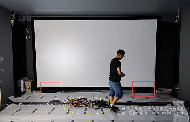 投影幕的安裝細節是這次重點提出來的,音箱主要是點位確認就好,不是落地、壁掛就是嵌入式安裝。而200英寸多的畫面則是半懸空式安裝。