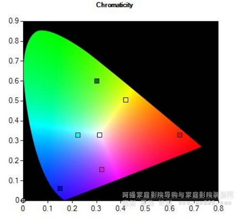 當色彩在圖上離開參考點并向其他顏色發生偏移時說明色調有錯誤,當色彩在圖上離開參考點并向白點更近或更遠說明飽和度有錯誤。最后一點,當色彩與參考標準相比過亮或過暗(沒有在色度圖中顯示但也需計算對比)說明亮度有錯誤,需要進行糾正。