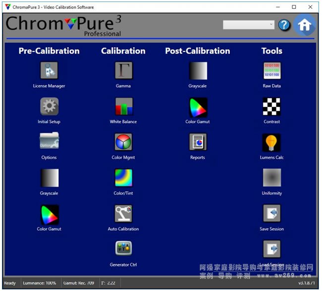 使用色彩極致軟件能夠將您的等離子電視、液晶平板電視或投影機按照行業標準進行校準。如有本手冊未涉及到的技術問題,請聯系 support@chromapure.com(英文)。
