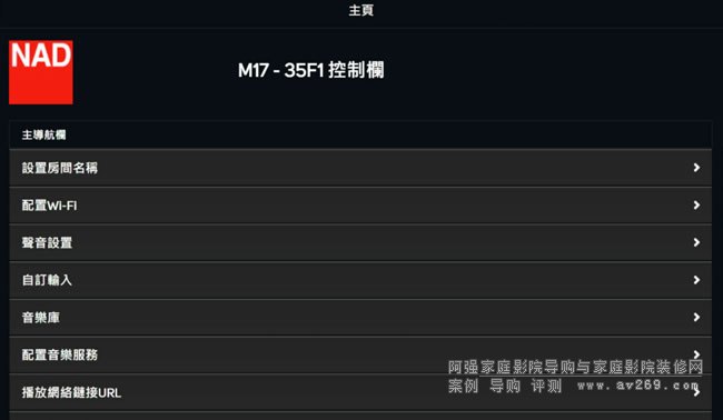 此外,只要在網路瀏覽器輸入NAD M17 V2i在家庭區域網路內的IP位址,則同一區域網路連網的智慧型手機、平板電腦或個人電腦,也都可以操控NAD M17 V2i。