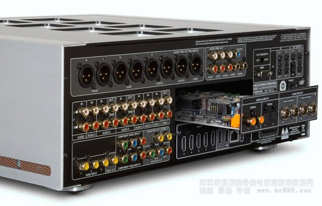 MDC擴充模組插槽鎖定后,如果不仔細看,本機背板和一般多聲道環繞前級并無差異,但實際上卻擁有超強的升級擴充機能。