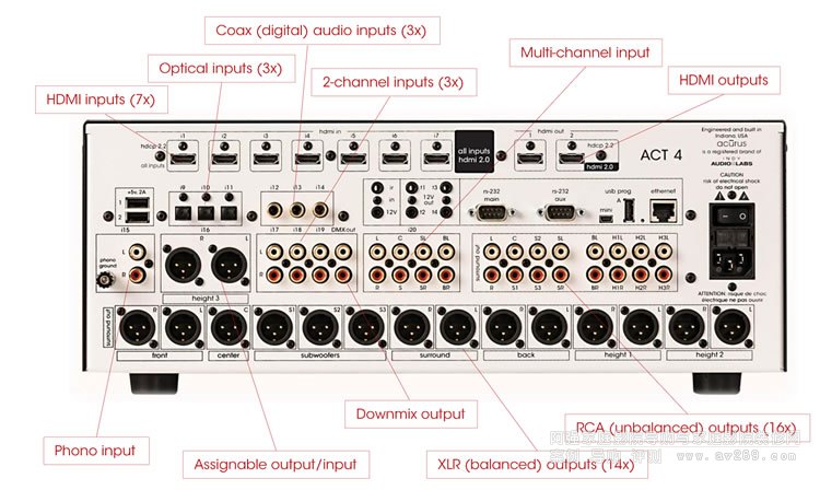 美國雅奇力 Acurus ACT4多聲道影院前級處理器,ACT 4 代表了 3D 音頻家庭影院處理器的一場革命。ACT 4 旨在成為現代 UHD 家庭影院的核心,結合了極致的音頻性能、控制靈活性和絕對最新的沉浸式音響技術。ACT 4 具有 20 個聲道的沉浸式音頻,將 Acurus 著名的工程設計與先進影院技術的力量完美融合。