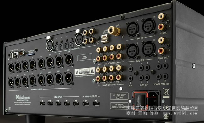4.jpgMX180也配備完整的模擬和數(shù)字音頻輸入接口,包括平衡及非平衡輸入,以及RCA的MM唱頭輸入,另外還有光纖、同軸、AES/EBU、USB-B等等數(shù)字輸入功能,當(dāng)然也兼具網(wǎng)絡(luò)功能。MX180最多可提供16聲道的XLR平衡輸出,可協(xié)助您建構(gòu)完整的多聲道系統(tǒng),其中4組輸出可設(shè)定成超低音輸出,應(yīng)對(duì)各種應(yīng)用方案均極為便利