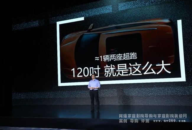 120寸有多大? “像一輛兩座超級跑車那么大” 海信激光顯示股份有限公司總經(jīng)理、首席科學(xué)家劉顯榮在發(fā)布會上介紹。根據(jù)測算,120英寸電視的面積相當(dāng)于一個國標(biāo)乒乓球臺的大小,是100英寸電視的近1.5倍。海信表示,通過對臨場感、最佳觀看視角,以及人眼對圖像細(xì)節(jié)分辨能力的綜合實驗分析,得出120吋激光電視的最佳觀看距離為4-4.5米。
