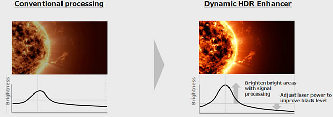 適用于投影機的升級版X1圖像處理器具有強大的處理能力,與兩款機型上新型激光輸出控制組合使用后,對比度進一步得到增強,使HDR明亮的場景更明亮,黑色場景更黑。新推出的動態逐項重塑技術可實現更強大的實時圖像處理,對每一幀的對象進行分析,并對眾多內容中不匹配的HDR圖像進行調整。