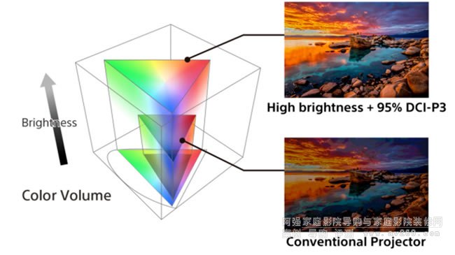 借助新型寬動態范圍光學技術,VPL-XW7000激光光源的潛力得到充分發揮,具有3200流明的高亮度和生動色彩增強功能。在TRILUMINOS PRO技術的助力下,VPL-XW7000能覆蓋高達95% DCI-P3的色域范圍。即使在明亮生活空間中,也能放映出膚色自然、色彩豐富的圖像。