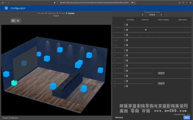 設置Core 16與其他StormAudio處理器相同;在分配好揚聲器通道后,你就可以創建你的第一個劇院。值得慶幸的是,GUI提供了清晰的圖表,帶有3D揚聲器查看器,幫助用戶創建基層、增高和頂置揚聲器層。它還讓你選擇創建多個劇院。