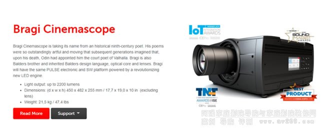 Barco Residential家庭影院系列投影機目前有Bragi CinemaScope(布拉吉寬熒幕)、Balder CinemsScope(巴德爾寬熒幕)、Hodr CinemaScope(霍德爾寬熒幕)、Njord CinemaScope(尼約德寬熒幕)4款寬熒幕機型。前2款是單芯片,后2款是三芯片。用戶可根據(jù)自己的需求和預(yù)算選擇適合自己的寬熒幕投影機。