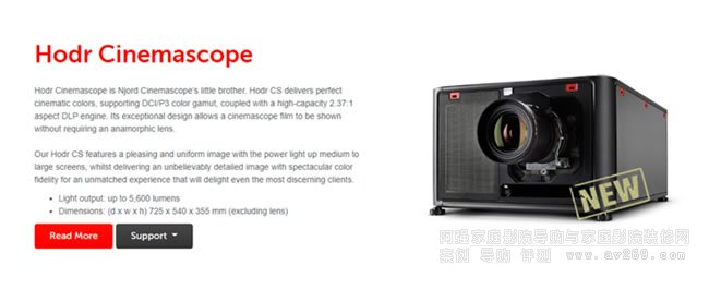Hodr CinemaScope(霍德爾寬熒幕)采用3片0.9寸DMD芯片,激光光源,具有5600流明亮度輸出,支持DynaBlack功能,是一款毫不妥協(xié)的家庭影院投影機。