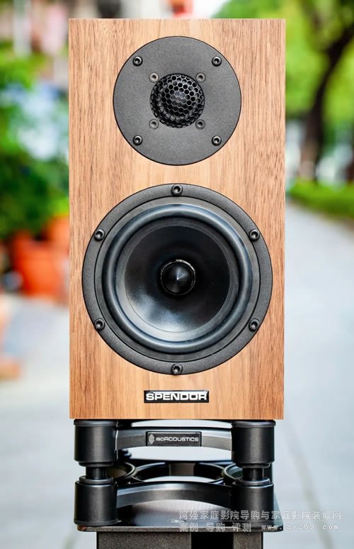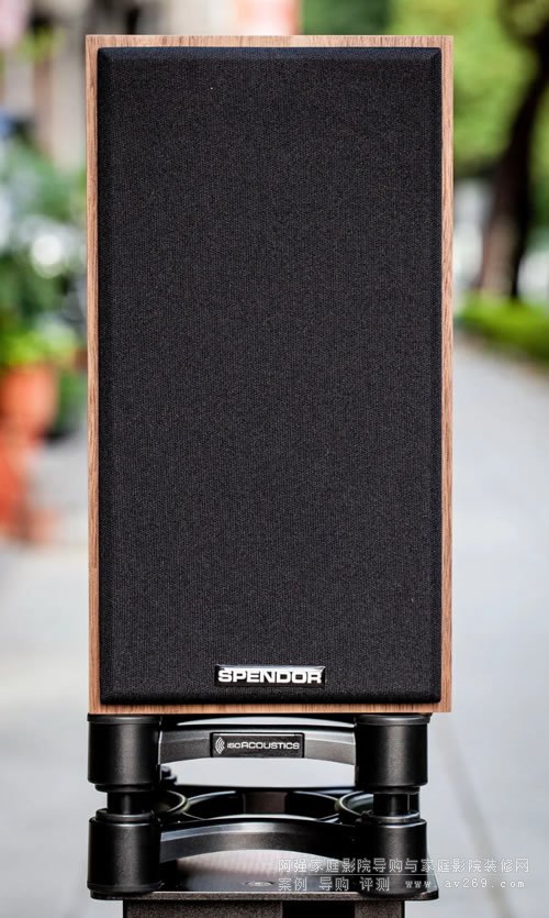 上圖是 SPENDOR A1 揚聲器在外頭人行道上...的實拍( 那個自然光真是美,A1 下方是本文另一個必考重點 --- IsoAcoustics ISO-155 喇叭短架,詳見后文 ),A1 采兩音路兩單體設計,不大的箱體竟被安置了一顆 5.9 吋低音單體,上方 22 mm 軟球絲質高音外頭被金屬罩包裹( 此舉除可保護高音單體外,對高頻的擴散亦有幫助 )。對了,SPENDOR 他家木工水平在英國頗享盛名,南方這對是胡桃木皮的版本,原廠還提供黑像木、橡木、消光白及櫻桃木皮供用家選擇,嗯,再看一眼,A1 的做工及比例愈看愈順眼,放在書房及小客廳肯定很有質感。