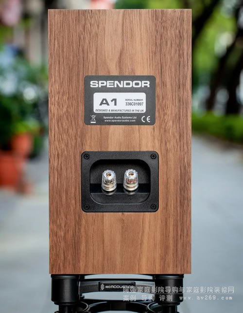 下圖則是 SPENDOR A1 揚聲器的背板及側面照,還是很端正、美麗及用心...,據原廠提供的資料,為了避免他家產品在相對濕度較高的國度多年后會有木箱變形的疑慮,除了揚聲器箱體看得見的外部六個面外,他們可是連箱體內部也貼上木皮,以確保任一款 SPENDOR 產品皆可為主人長期服務,這也是很棒的加分題喔!