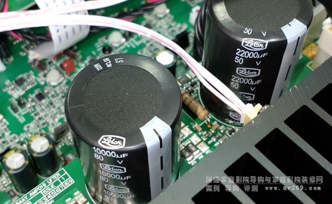 ▲G類輸出級要做兩組電源,低壓用兩枚22,000uF/50V電解電容、高電壓則用兩枚10000uF/80V電解電容濾波。