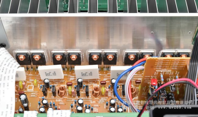 多聲道后級(jí)擴(kuò)大電路的部分,TX-NR6100採(cǎi)用自家優(yōu)秀的Dynamic Audio Amplification聲頻電路,并納入獨(dú)家VLSC向量線性修正電路,盡可能做到簡(jiǎn)潔結(jié)構(gòu)、低負(fù)回授的設(shè)計(jì)。每聲道使用一對(duì)頻寬優(yōu)秀的功率晶體2SA1962A/2SC5242A推挽輸出,功放電路的電源使用兩枚10,000μF濾波電容,安裝位置也盡量靠近功率晶體,可以“就近”提供強(qiáng)大的電流輸出,能有效去除數(shù)位噪訊,使音效更清晰。