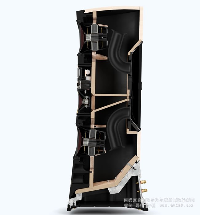 LARS:當然,我們對它給予的希望不僅僅限于展覽的藝術品。這是一款蘊含了達尼新老技術的傳統音箱。采用新的箱體技術,可以盡量降低諧振并減少音染。內置的元件使靈敏度提升到最高,也增加了動態。被設計成以最大功率且提供最好的控制;以更小的功率驅動相同的聲壓。