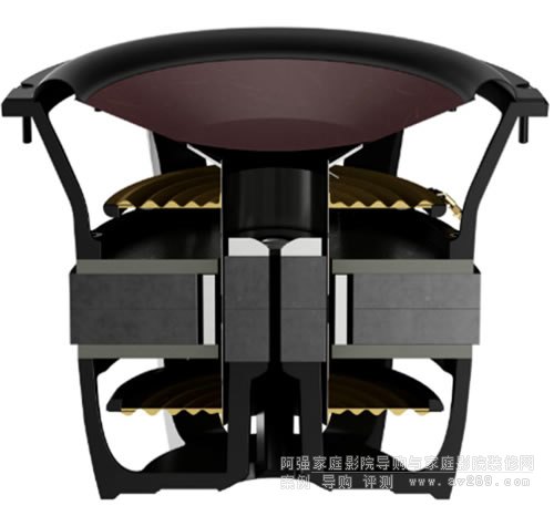 LARS:雖然它圍繞中間的釹磁鐵打造,但兩側都有完整的磁路系統。同時加持雙線圈,以提供極低失真的中頻,擁有巨大的動態余量,還能夠在不改變其參數的情況下移動。這一點也要歸功于我們的木纖維振膜,在不增重的情況下升級振膜、降低共振。這是我們比較滿意的最終解決方案。