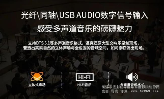 HD-3080旨在打造視、聽(tīng)、唱三方均衡的超高性價(jià)比AV功放,它在音樂(lè)方方面的表現(xiàn)同樣不俗。它支持128G大容量U盤和TF卡的本地播放,支持APE、FLAC、WAV等多種無(wú)損音樂(lè)格式,更支持MP3、AAC、WMA等壓縮音樂(lè)格式。