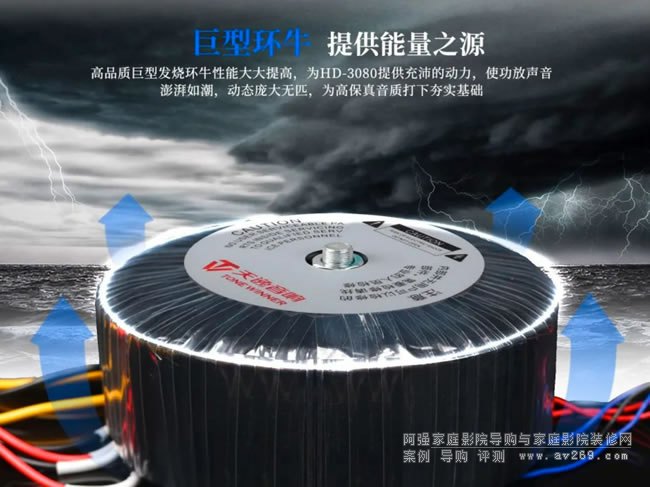 HD-3080搭載一只450W高品質(zhì)環(huán)形變壓器,為機(jī)器提供7聲道120W(8Ω.RMS)/180W(4Ω.RMS)的強(qiáng)大純凈動(dòng)力,配合高品質(zhì)大電解電容,充分保證該功放充沛的供電動(dòng)力源源不絕。不管是看電影、聽(tīng)音樂(lè)還是卡拉OK,都能帶來(lái)逼真的效果和臨場(chǎng)感,隨時(shí)享受上佳的感官體驗(yàn)。