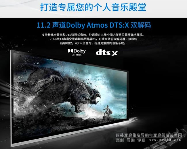 HD-3000A自帶兩大“必殺技”。支持7.1.4聲道揚聲器布局,內(nèi)置巨型環(huán)牛,提供160W Rms/8Ω或285W Rms/4Ω的強大動力,盡享百平米觀影空間內(nèi)最高規(guī)格的感官盛宴。