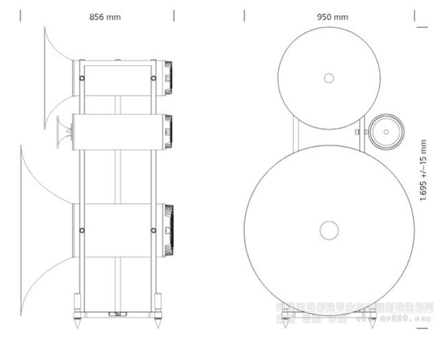 | 號(hào)角直徑 | 中/低音 | 950 毫米/37 英寸 |