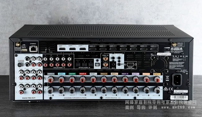 支持了15.2聲道處理,除了兩組低音炮Pre-out之外,還有15組環繞聲道Pre-out。