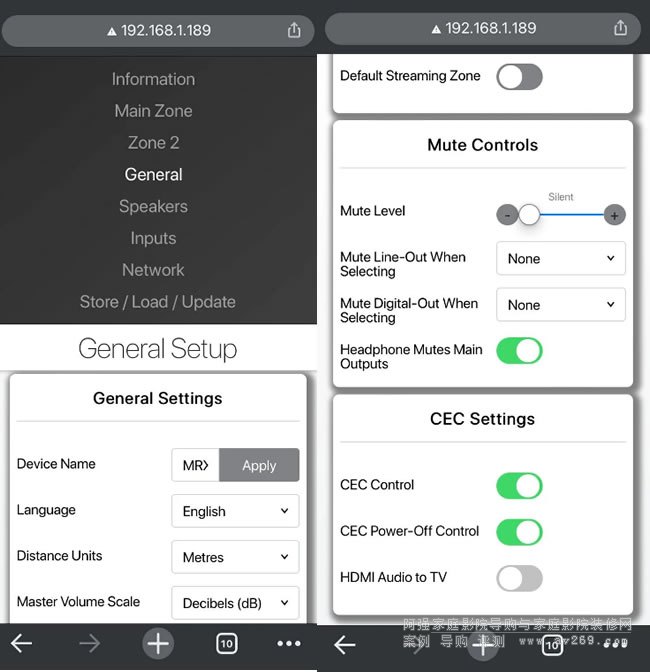通過網頁版Anthem Web UI可以完整地設定擴音機的不同參數,比起用遙控設置更加方便。