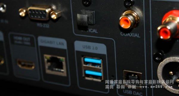 隨著UHD時代的到來,影片碼率也越來越高了,如果你打算外接移動存儲設備,建議優先使用后面這兩個USB 3.0接口,傳輸速度會更快。當然對應重度家庭影院玩家來說,家里肯定必備一臺NAS,這時候通過千兆網口接入局域網才是正確打開方式,NFS、SMB、UPnP,Web DAV之類的網絡協議都支持。